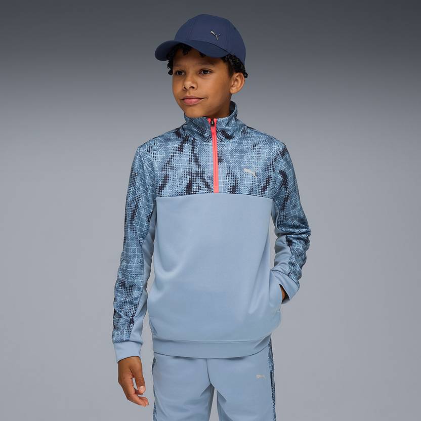 PRODUCT STORY : For boys who bring energy to every session, this jacket is their perfect training partner. Whether it's warm-ups or cooldowns, the moisture-wicking fabric and breathable pique knit keep them dry and focused. With a half-zip design and bold print, it's made for movement and made to stand out. FEATURES & BENEFITS : dryCELL: Keeps you dry and comfortable, DETAILS : Fit: Regular, Material: 100% Polyester, Fabric Type: Knitted Piqué, Neck: Crew Neck, Sleeves: Long sleeves, Fastener: Half zip, Length: Regular, Pocket Type: Side pockets, Pattern: All-over print.