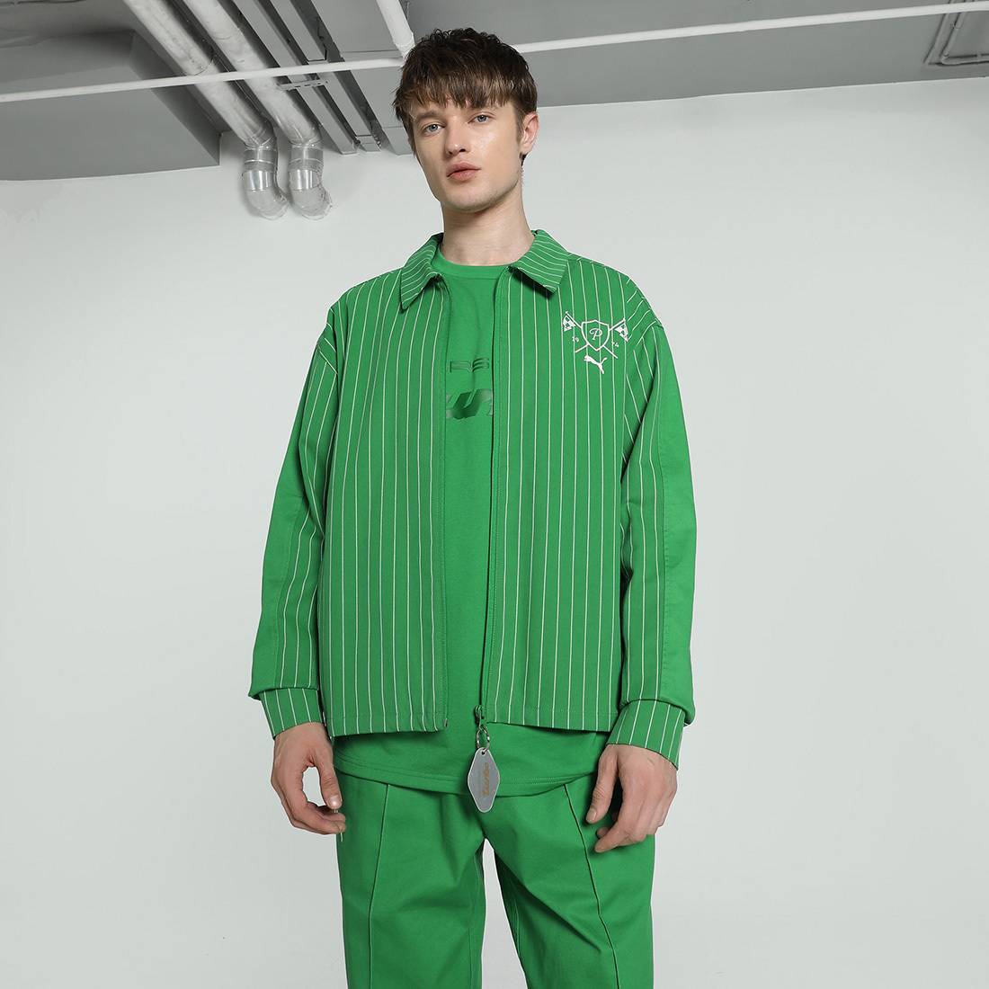 PRODUCT STORY : Porsche Legacy presents Turbo Club, one of the most prestigious clubs in the world. It's country club inspired, with a special focus on the Porsche 911 Turbo to bring to life an iconic lifestyle collection. Embrace the legacy with this relaxed-fit jacket, featuring the iconic 911 Turbo pinstripe pattern, T7 sleeve stripes, and a seasonal graphic embroidery on the back. FEATURES & BENEFITS : Made with at least 20% recycled cotton. DETAILS : Relaxed fit Main material: Twill weave Regular length Roll neck Full zip Long sleeves Hand pockets Iconic pinstripe pattern from the 911 Turbo seat T7 stripe on the sleeves Key chain attachement detail