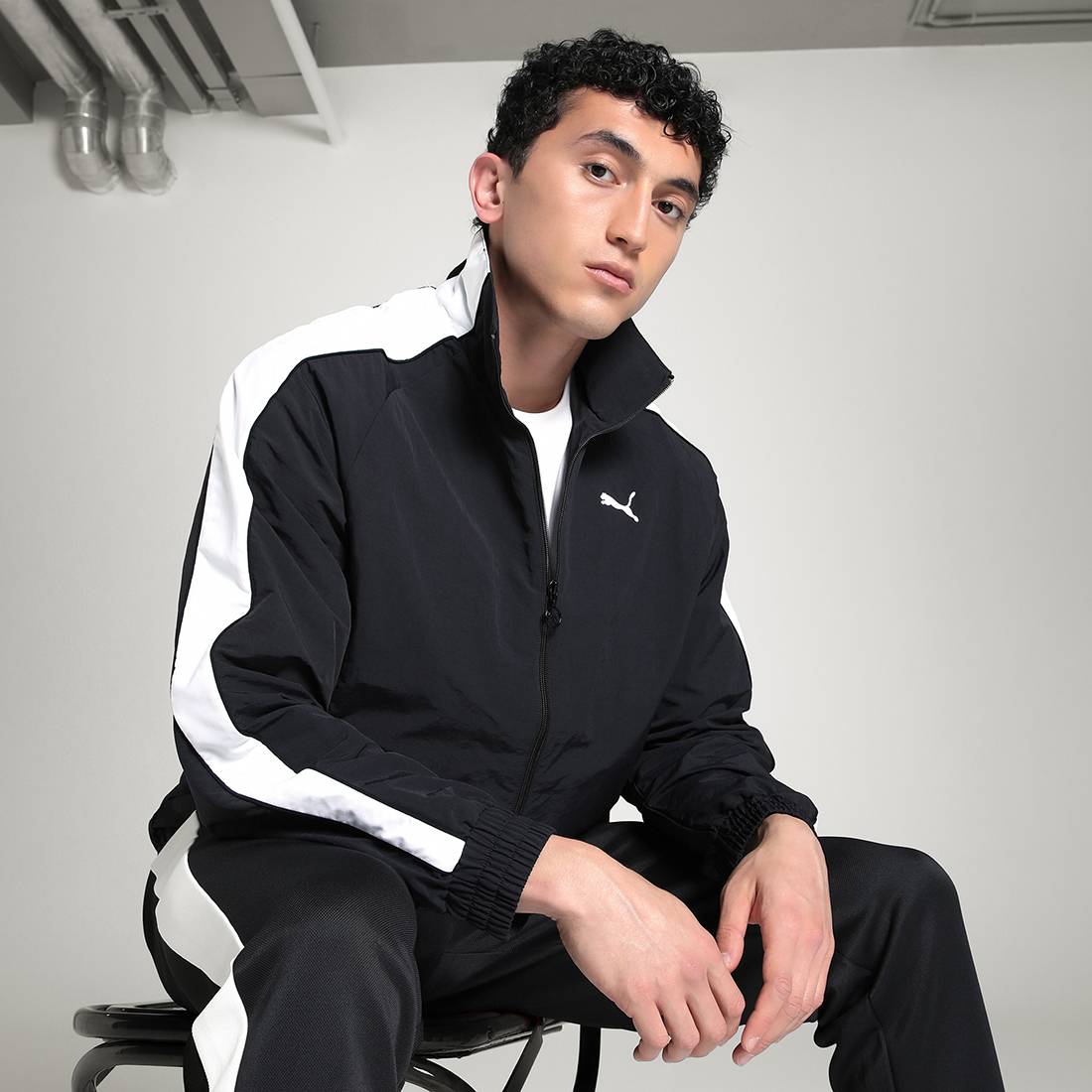 PRODUCT STORY : Step up your game with this oversized track jacket. Featuring a metallic zipper, embroidery, and T7 panel inserts on the sleeves, it's all about making a statement. Zip up, stand out, and own your look with PUMA. FEATURES & BENEFITS : Made with 100% recycled material excluding trims & decorations windCELL: Technology designed to protect against the wind and keep you comfortable during exercise DETAILS : Oversized fit Plain weave fabric Standard jacket length Stand up collar Full zip closure Zip pocket, side pocket PUMA branding details