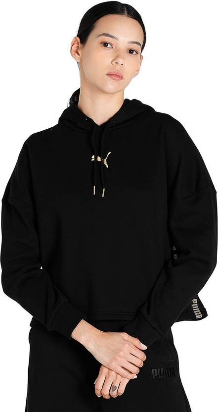 PRODUCT STORY: A foil finish gives minimalist design a touch of refinement in our Metallic Nights Hoodie.DETAILS Relaxed fit Hood with external drawcord for adjustable fit Ribbed cuffs Repeated PUMA Logo tape Metallic PUMA Cat Logo at mid-chest Cotton and polyester