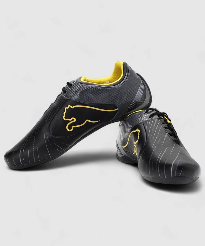 Known for your sense of style that stands out in any crowd, your friends always wait to see what you wear to the next occasion. Add this trendy pair of Puma Shoes to your collection and assert the fashionista in you. Crafted in black synthetic leather with yellow details, this sports shoe is adorned with embroidery on the tongue panel and stitch detail on the body to add a dash of classy style. Wear these synthetic and leather sneakers with denims and a tee.