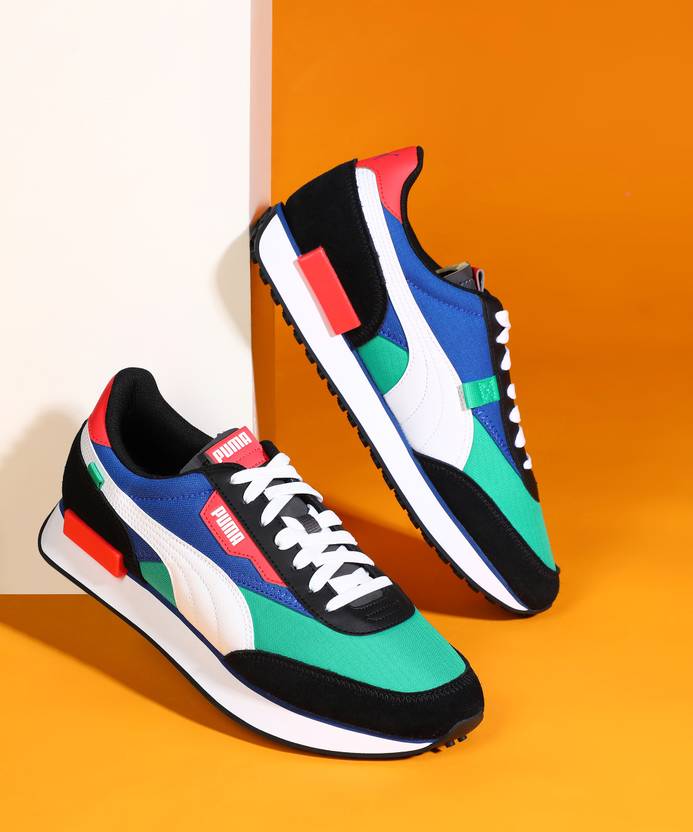 PRODUCT STORY : Born in 1980, the Fast Rider launched when running moved from the track to the street. Now, we've revamped the Fast Rider into the Future Rider, featuring a slim Federbein outsole and our comfortable Rider Foam midsole. This Play On version dons a nylon base with suede and synthetic overlays. DETAILS : Nylon base with suede and synthetic overlays.Mesh lining.EVA midsole.Rubber outsole.