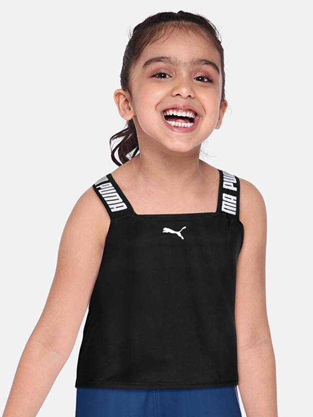Girls Casual Polyester Tank Top (Black, Pack of 1)