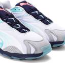 In 2000, performance shoes sought new ways to maximize energy. In running, that meant new takes on material play and thick soles, including the PUMA Inhale. It featured exaggerated contours and curves on its upper, inspired by the proper breathing needed to excel at and maximize performance. In 2019, we reissue the Inhale in a pack inspired by flares movements and colours.