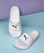 PRODUCT STORY : After an intense session of swimming lengths, treat your feet to the Divecat V2 Lite Slides. With water-resistant material and groves on the footbed for grip, they'll offer you a secure step as you dry off in the changing room or on the sand. Crafted with our lightweight compression-moulded material and featuring the unmissable PUMA Cat Logo, they tick the boxes of comfort and style, too. FEATURES & BENEFITS : CMEVA: PUMA's compression-moulded EVA material for lightweight performance.IMEVA: PUMA's material for a lightweight and comfortable feel. DETAILS : Heel type: Flat.Shoe width: Regular fit.Shoe pronation: .Heel-to-toe-drop: 0 mm.Textured footbed for comfort with bottom grooves for grip.IMEVA upper, midsole and outsole .Double-density moulded EVA construction for a snug fit.Water resistant.PUMA Cat Logo on upper.