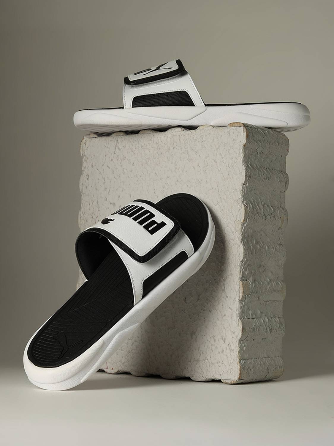 Product Story: Slip into unmatched comfort and effortless style with the Royalcat Comfort Unisex Slides. Crafted with a durable synthetic upper, these slides feature a molded EVA outsole and footbed for superior cushioning and support. Lightweight yet robust, they're designed for long-lasting wear and undeniable comfort.Details: Heel type: Flat.Shoe width: Regular fit.Fully adjustable synthetic upper. EVA outsole.PUMA Wordmark and Cat logo on upper.