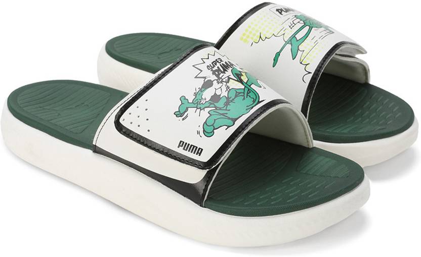 PRODUCT STORY : Keep it easy, breezy, and bold with these slides. A soft moulded footbed teams up with a durable synthetic upper for all-day wear, while the lightweight EVA outsole adds effortless cushioning. From poolside, to casual errands, to post-training chill, PUMA's got your laid-back looks sorted. DETAILS : Width: Regular, Toe Type: Open, Fastener: Slip on, Synthetic upper, Heel type: Flat, Soft moulded footbed, Lightweight, moulded EVA outsole.
