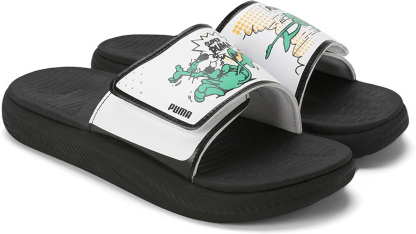 PRODUCT STORY : Keep it easy, breezy, and bold with these slides. A soft moulded footbed teams up with a durable synthetic upper for all-day wear, while the lightweight EVA outsole adds effortless cushioning. From poolside, to casual errands, to post-training chill, PUMA's got your laid-back looks sorted. DETAILS : Width: Regular, Toe Type: Open, Fastener: Slip on, Synthetic upper, Heel type: Flat, Soft moulded footbed, Lightweight, moulded EVA outsole.