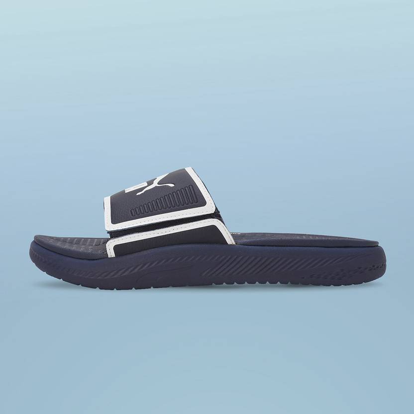About Softride: PUMA's SOFTRIDE technology represents an advancement in footwear comfort. It incorporates our softest foam, designed to deliver extreme cushioning that promotes sustained comfort throughout the day. The SOFTRIDE midsole, softer and lighter than traditional EVA, extends through the full length of the shoe. This innovative construction enhances the wearer's experience, providing lightweight support during daily activities.Product Story: Slide into summer with Softride Slides. Their light yet durable EVA outsole and moulded footbed keep you comfortably cruising from poolside to seaside. Made for leisurely strolls on sunny days, these slides have a flexible fit and synthetic leather uppers built to last long after your tan fades.Details: Heel type: Flat.Shoe width: Regular fit.Soft molded footbed for comfort.Durable synthetic leather upper.Light molded EVA outsole.PUMA cat logo.