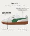 PRODUCT STORY : Straight from the archives, it’s the PUMA Palermo. This classic terrace shoe builds on PUMA’s heritage within football, while appealing to today’s sneakerheads and fashion mavens. This execution features a leather base with a suede Formstrip and overlays.FEATURES & BENEFITS : PUMA’s leather products support responsible manufacturing via the Leather Working Group.www.leatherworkinggroup.com.DETAILS : Leather base,Suede Formstrip, T-toe and heel overlay,Synthetic tongue, eyestay and quarter panel underlay,Debossed PUMA branding on tongue,Printed PUMA branding on quarter panel flap,Screen printed PUMA branding on FOT.