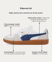 PRODUCT STORY : Straight from the archives, it’s the PUMA Palermo. This classic terrace shoe builds on PUMA’s heritage within football, while appealing to today’s sneakerheads and fashion mavens. This execution features a leather base with a suede Formstrip and overlays.FEATURES & BENEFITS : PUMA’s leather products support responsible manufacturing via the Leather Working Group.www.leatherworkinggroup.com.DETAILS : Leather base,Suede Formstrip, T-toe and heel overlay,Synthetic tongue, eyestay and quarter panel underlay,Debossed PUMA branding on tongue,Printed PUMA branding on quarter panel flap,Screen printed PUMA branding on FOT.