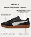 PRODUCT STORY : Straight from the archives, it’s the PUMA Palermo. This classic terrace shoe builds on PUMA’s heritage within football, while appealing to today’s sneakerheads and fashion mavens. This execution features a leather base with a suede Formstrip and overlays.FEATURES & BENEFITS : PUMA’s leather products support responsible manufacturing via the Leather Working Group.www.leatherworkinggroup.com.DETAILS : Leather base,Suede Formstrip, T-toe and heel overlay,Synthetic tongue, eyestay and quarter panel underlay,Debossed PUMA branding on tongue,Printed PUMA branding on quarter panel flap,Screen printed PUMA branding on FOT.