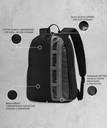 Two-way zip opening into main compartment, zip opening into front pocket, D- ring on front panel, PUMA branded 150D Polyester lining with PU backing, one side mesh pocket, adjustable and padded shoulder straps with Cat branded reflective loop and one webbing loop each side, padded back panel, webbing carry handle, branded metal zip puller's, reflective loop and repeating PUMA wordmarked logo print on front panel.