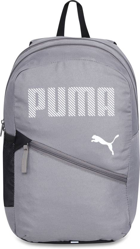 Two-way zip opening into main compartment, zip opening into front pocket, lining laptop compartment inside main compartment, one side mesh pocket, adjustable and padded shoulder straps with reflective PUMA Cat branded loop, webbing carry handle, padded back panel, Durabase material on base panel, PUMA branded 150D Polyester lining with PU backing, branded metal zip puller on main compartment, metal zip puller with webbing tape on front pocket, reflective Durabase logo tape on front panel, PUMA Cat and PUMA wordmarked logo print on front panel.
