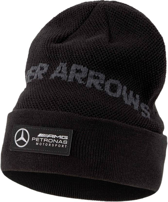 PRODUCT STORY: Undeniably urban but with sleek motorsport flair, this street-ready Mercedes-AMG Petronas Motorsport beanie is both casual and cool. DETAILS: Innovative mesh beanie made with sophisticated yarn for temperature control Silver Arrows graphic at front Reflective Mercedes AMG Petronas Motorsport Logo at cuff CAT LOGO embroidered at back