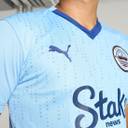 Product Story: Showcase your support for your favourite club with the Mumbai City Home Replica Men's Football T-shirt. . Featuring an all-over geometric print, Mumbai City Football Club crest badge, and dryCELL technology for moisture management. The contrast trims add a sporty flair. Whether you're playing on the field or cheering from the stands, this tee exemplifies your love for football and Mumbai City.Details: V-neck.Slim fit.Short sleeves.PUMA Cat logo embroidery on chest.Mumbai City FC crest badge.