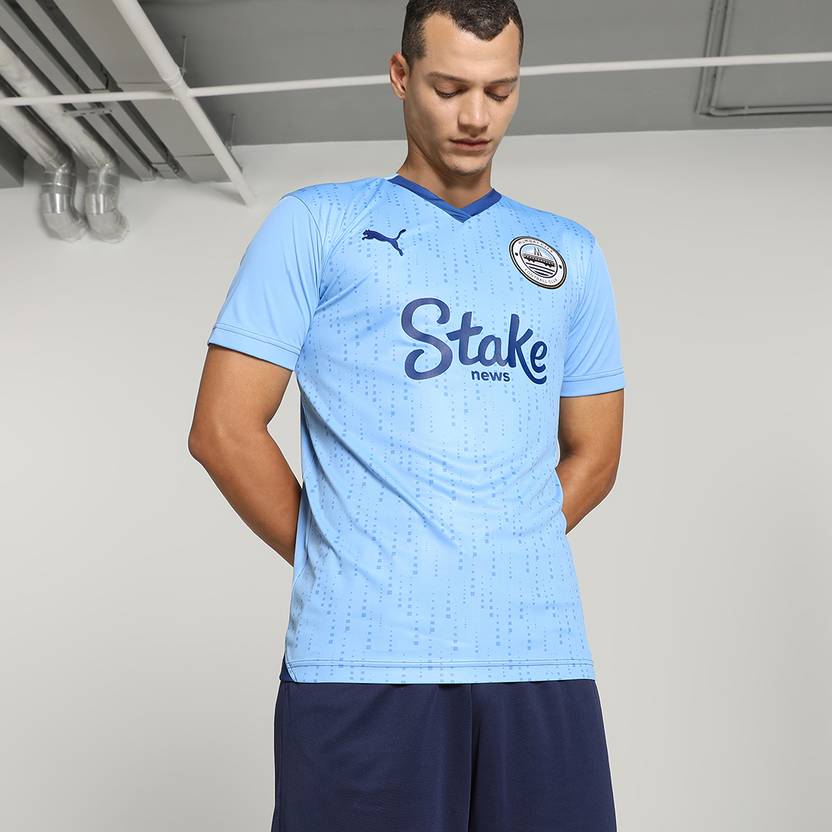 PUMA Mumbai City Home Replica Men Printed, Typography V Neck Polyester Blue T-Shirt