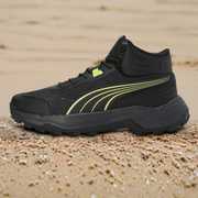 Product Story: Experience the PUMA spirit and make your runs legendary with these dynamic midboot kicks. Featuring a textile upper with perforations for breathability and rubber outsole, they deliver optimal performance and comfort for every stride. The lug outsole ensures grip and stability, making your runs unforgettable. Features & Benefits: SOFTRIDE: PUMA’s softest foam for advanced cushioning and all-day comfortDetails: Mid boot. Heel type: Flat. Shoe width: Regular fit. Heel-to-toe-drop: 10 mm. Shoe pronation: Neutral. Built for a running distance of upto 500 km. Ideal for Road running. Textile upper. Rubber outsole. PUMA logo branding. Lace fastening.