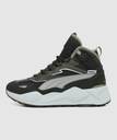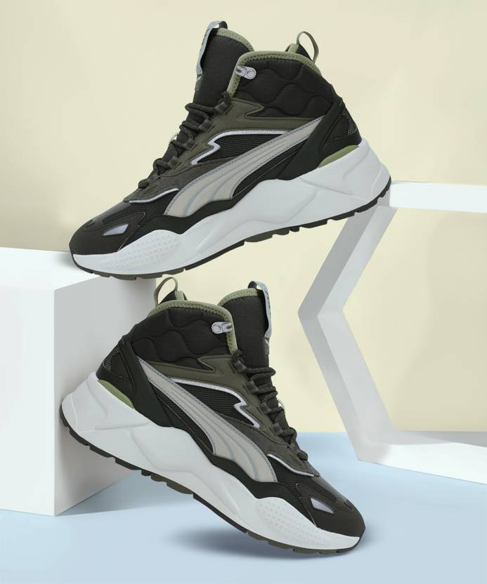 About RS-Running System: PUMA's RS series revives the 1980s high-quality cushioning with RS (Running System) foam, an improved EVA compound offering superior rebound and enhanced stability. Originally developed by the RS Computer, this technology offers excellent energy return and a secure, confident stride, blending vintage aesthetics with advanced performance. Product Story : The RS-X returns for a new generation of consumers who live to express their individuality. A high padded collar, metallic hardware, and reflective details make the RS-X Hi street-ready.Details: Mid Boot,Heel type: Flat,Shoe width: Regular fit,Shoe pronation: Neutral,Heel-to-toe-drop: 0 mm,Mesh base,Synthetic toe overlay,Suede bottom eyestay overlay,Synthetic Formstrip with debossed lines,Padded nylon collar,TPU heel piece,RS midsole,Rubber outsole.