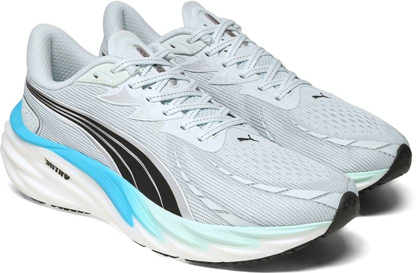PRODUCT STORY : Running feels different for everyone – and that’s exactly how it should be. Whether you’re chasing a PR or just chasing the feeling, Velocity 4 is built to move with you. Any runner, any time, any distance, it can withstand, deliver, and surpass expectations. Our lightest Velocity yet, it features a full-length NITROFOAM midsole, improved breathability thanks to new mesh on the upper, and PUMAGRIP outsole for the best traction in the game. FEATURES & BENEFITS : BREATHABILITY: Premium engineered knit material engineered for breathability and stretch, reinforced with PWRTAPE for durability and lockdown , NITROFOAM: Innovative nitrogen-infused foam technology that uses premium raw materials to provide maximum energy return, PUMAGRIP: Outsole is made of durable rubber compound for multi-surface traction , The upper of the shoes is made with at least 30% recycled materials., DETAILS : Fit: Regular, Toe type: Rounded, Fastener: Laces, Heel type: Flat, Heel-to-toe drop: 10mm, Stack height 36mm / 26mm, Recommended for: neutral pronators.