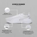 PRODUCT STORY: Power up your performance with these carefully designed running shoes. With an ultra-comfortable sockliner, a high-traction outsole and supportive internal structures, the Scorch Runner is ready to go the distance.FEATURES & BENEFITS SoftFoam+: PUMA's comfort sockliner for instant step-in and long-lasting comfort that provides soft cushioning every step of your dayDETAILS Low boot Responsive foam midsole Zoned rubber outsole for traction and durability Midfoot internal lockdown support structure Soft tongue for comfort Lace closure for a snug fit PUMA Wordmark label at tongue PUMA Formstrip at lateral side