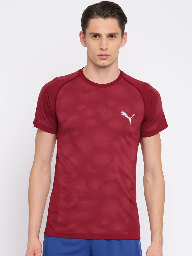 evoKNIT Camo Tee Men Self Design Round Neck Cotton Blend Red T-Shirt