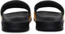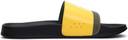 A pair of yellow and black printed sliders Synthetic upper Cushioned footbed Patterned eva outsole.