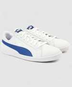 PRODUCT STORY: PUMA unleashed a full court fury with our 1970s tennis collection. All white leather, all love, these styles were fresh takes on classic court shoes – as good for hours of punishing play as they were for the clubhouse cookout that followed. This version of the Smash stays true to its tennis roots while boasting a stylish new look with an all-leather upper. Features Soft leather upper T-toe construction Lace closure for a snug fit Cushioned midsole for comfort Rubber outsole for grip PUMA Formstrip at medial and lateral sides PUMA No. 1 Logo at tongue PUMA Cat Logo at heel