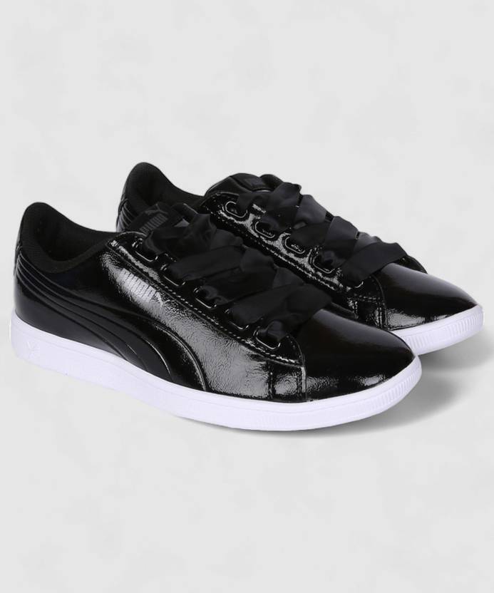 Inspired by basketball, designed for everyday activity, PUMA Vikky is a win-win, both in style and in function. We've even incorporated a little touch of glam with an irresistible, chunky, satin bow closure, into these stylish slam dunks. DETAILS Sneakers Inspired by women's basketball, enjoyed by active women everywhere Soft synthetic patent upper; wide laces closure system Soft foam liner Grippy, durable rubber outsole Debossed PUMA Formstrip on lateral side PUMA Wordmark Logo on vamp