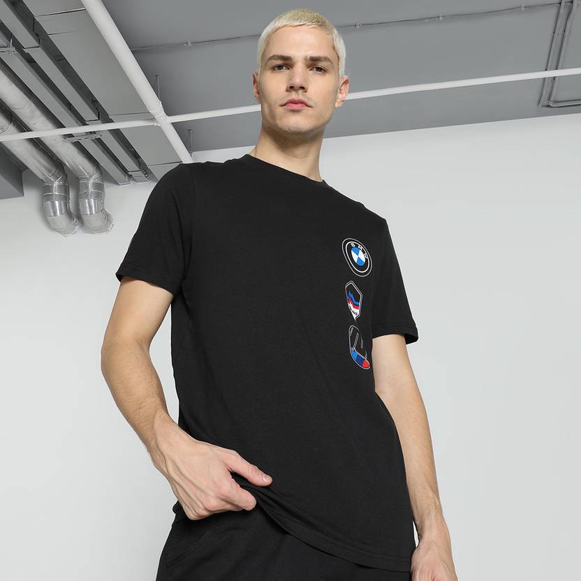 PRODUCT STORY : The crews heads off to summer. This BMW M Motorsport capsule is inspired by a desert rally and uses mini badges, dip dyes, modular designs, and utilitarian futuristic aesthetics to complete the aesthetic. This tee adorns all the hallmarks of the crew in addition to the signature logo of the marque. FEATURES & BENEFITS : Recycled content: Made with at least 20% recycled cotton. DETAILS : Relaxed fit,Crew neck,Short sleeves,BMW M Motorsport graphic on front,BMW M Motorsport graphic on back.