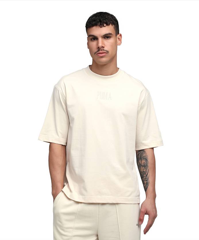 PUMA Men Solid Crew Neck Cotton Blend White T-Shirt