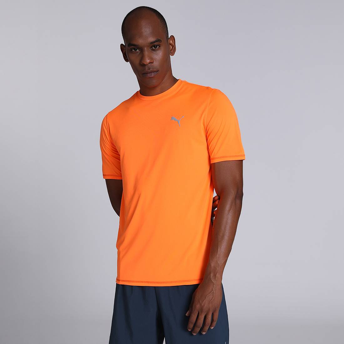 PUMA Solid Men Round Neck Orange T-Shirt
