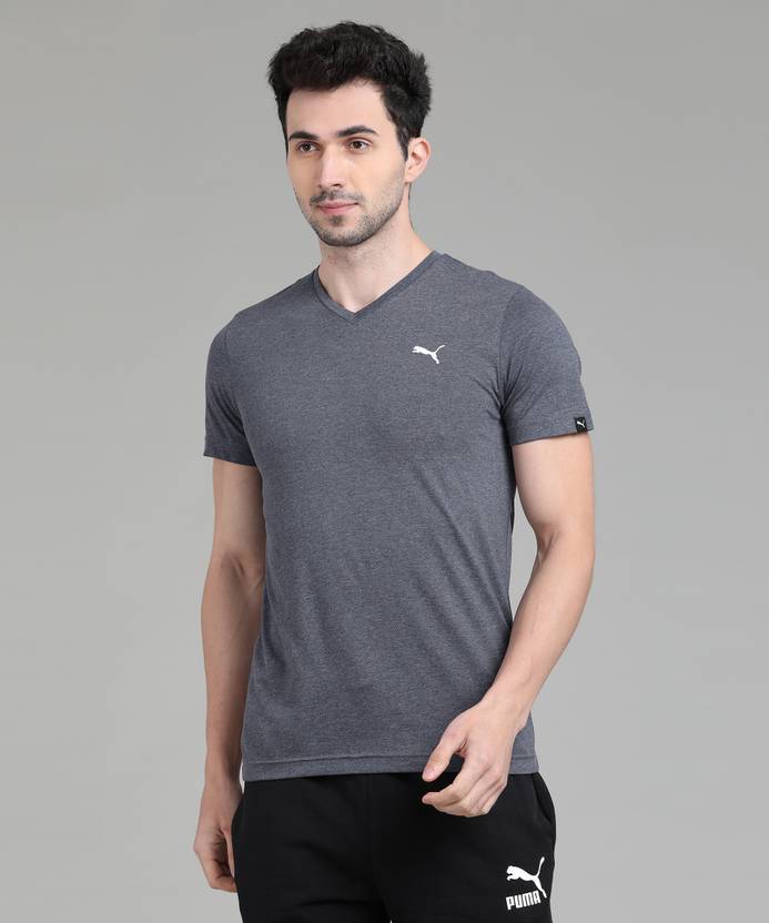 PUMA Solid Men V Neck Blue T-Shirt