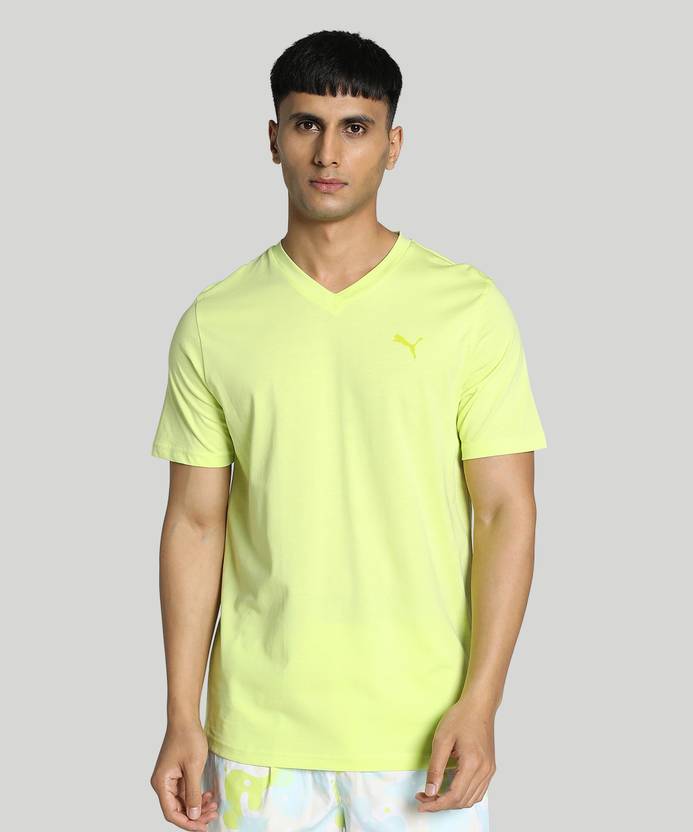 PUMA Solid Men V Neck Yellow T-Shirt
