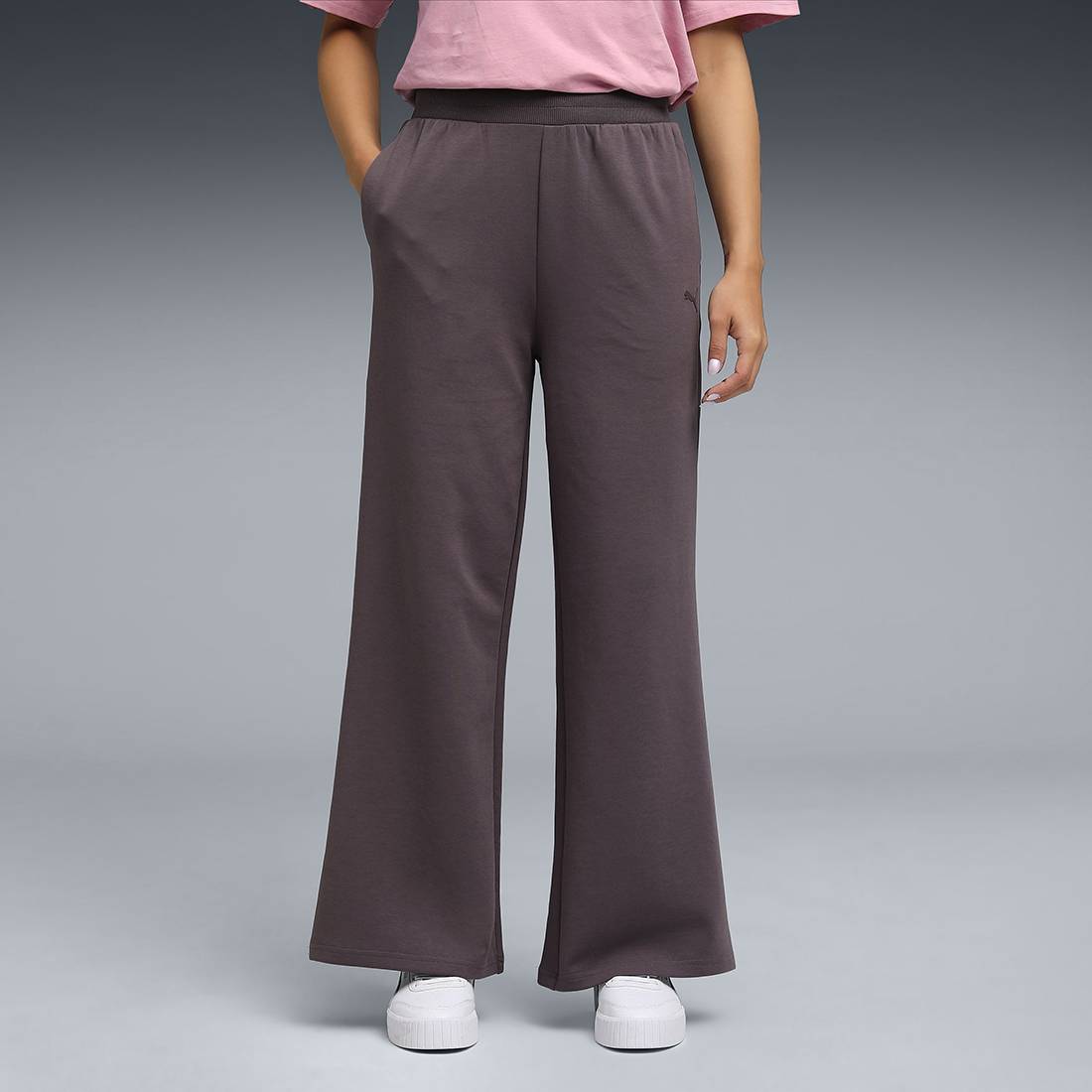 PRODUCT STORY : For women who value both style and comfort, the PUMA Essentials range has the perfect staple. These classic flared-leg track pants feature an adjustable elasticated waist for a tailored fit and subtle PUMA branding, all crafted from a soft, premium cotton blend. A versatile addition to any wardrobe, they offer both ease and style for every activity.DETAILS : Medium rise, Regular fit, Zippered Side pockets for convenient storage, Elastic waistband, Flared Leg Pattern, PUMA Logo at left leg.