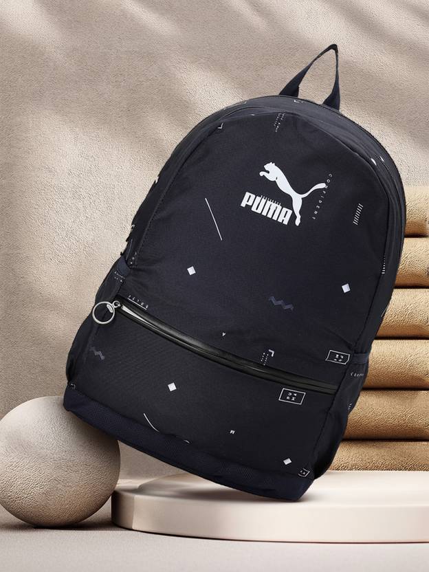 PRODUCT STORY : DETAILS : Two-way zip opening into large main compartment.Classic Archive Logo give a retro elemental look.Additional zip pocket at front.Elastic water bottle holder at both sides.Webbing carry handle at .Padded, adjustable shoulder straps.Large PUMA Cat Logo.Durabase technology at the bottom provides water resistance.100% Polyester.Volume Capacity: 31 x 46 x 19 (27L).