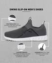 PRODUCT STORY: The perfect amalgamation of style and comfort, the Swing Slip-On Men's Shoes features a blend of synthetic and textile upper design is completed with subtle PUMA branding. Softfoam footbed elevates comfort while the ground contact EVA outsole ensures a lighter weight while still providing the grip you need and unparalleled flexibility to your pace and lightness.DETAILS Fully mesh upper for breathabilty EVA midsole for energy rebouce EVA outsole for lightness Pull tabs for easy slip in/out PUMA branding