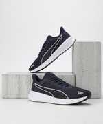 PRODUCT STORY : Multiple uses, total comfort. Slip the Transport Modern Unisex Running Shoes on for your morning jog, a day at the office, or a casual weekend outing. The sculpted design is enhanced by the moulded eyestay as well as the PUMA Formstrip and embroidered outline on the tongue. A full-length rubber outsole provides total traction. The finishing touch: the classic PUMA Cat Logo on the toe. DETAILS : Heel type: Flat.Shoe width: Regular fit.Shoe pronation: Neutral.Heel-to-toe-drop: 4 mm.Upper and tongue featuring the PUMA Formstrip.Heel cap.Moulded eyestay.Full rubber outsole.PUMA Cat Logo on toe.Running Type : Neutral.Ideal for Road & Treadmil Running
