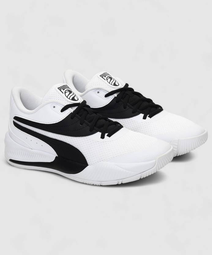 PRODUCT STORY: Named after the triple PUMA Formstrip design feature, these bold basketball shoes have it all. The full-length ProFoam midsole combined with a high-abrasion sticky rubber outsole provide high-rebound cushioning and superior traction and power across the court, while a performance mesh upper with leather overlays adds fierce style. As they say, three is the magic number.FEATURES & BENEFITS ProFoam: PUMA's lightweight, high-rebound EVA midsole solution provides instant cushioning and a responsive rideDETAILS Low boot silhouette Performance mesh upper with leather overlays Full-length ProFoam midsole specifically engineered for basketball Sticky rubber outsole for enhanced durability and traction Integrated Formstrip lockdown lacing system Triple PUMA Formstrip at midsole and upper PUMA x BASKETBALL branding at tongue