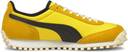 A pair of round-toe mustard yellow and yellow colorblocked sneakers, has regular styling,Low bootLeather and textile upperEVA midsoleRubber outsolePUMA Cat logo, PUMA wording, and FAST RIDER wording in contrasting black on the outside PUMA wording on the tongueCushioned footbed Textured.