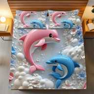 PumiTown Cotton King Flat 320 TC 3D Printed Bedsheet (Pack of 1, 7D-DOLPHINE)