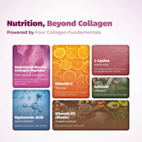 Boasting a combination of hydrolyzed marine collagen peptides, L-lysine amino acid, vitamin C, calcium, hyaluronic acid, and vitamin B7 (biotin), this nutrient-rich formula enhances skin hydration and elasticity while improving connective tissue strength. Each carefully selected ingredient contributes to supporting collagen production and overall wellness, working together to nourish the body from within.