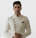 Dry Clean Only (Highly recommended for wedding sherwanis to prevent shrinkage or damage to embroidery, Silk Blend (or Art Silk/Jacquard if applicable).
