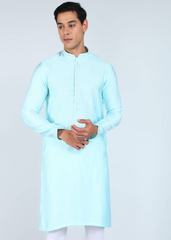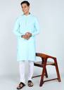 Punya Men Self Design Straight Kurta (Light Blue)