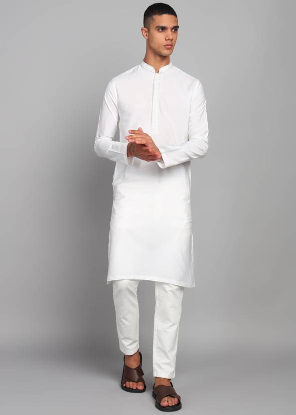 Punya Mens White Solid Mandarin/Chinese Neck Ethnic Wear Only Kurta