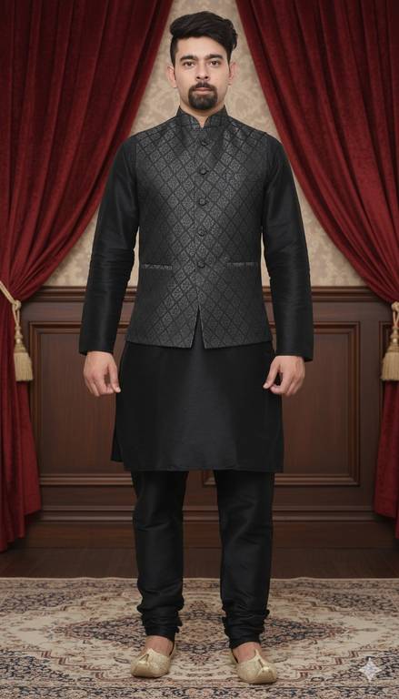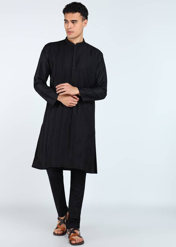Punya Mens Black Solid Mandarin/Chinese Neck Ethnic Wear Only Kurta