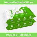 Pure M Natural Intimate Wipes for Women | Aloe Vera Anti Bacterial Wipes Pack of 2 (50 Wipes)
