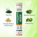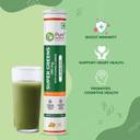 "Pure Nutrition Super Green Effervescent is a plant-based blend of Organic leafy veggies and herbs that aids in Immune function, detoxification, gut health, metabolism, skin health, and more. It contains a unique blend of not only greens and herbs but also, a carefully crafted combination of Vitamins C, B1, B3, B5, B6, B13, and Minerals like Manganese. The greens included in the products are Spinacia Oleracea, Aloe Barbadensis, Triticum Aestivum, Arthrospira platensis, Chlorella, Arjun Leaf extract, Alfalfa, Moringa and Spirulina. These powdered herbs mixed together deliver a powerful dose of polyphenols, vitamins, and minerals that support the smooth functioning of all body systems.