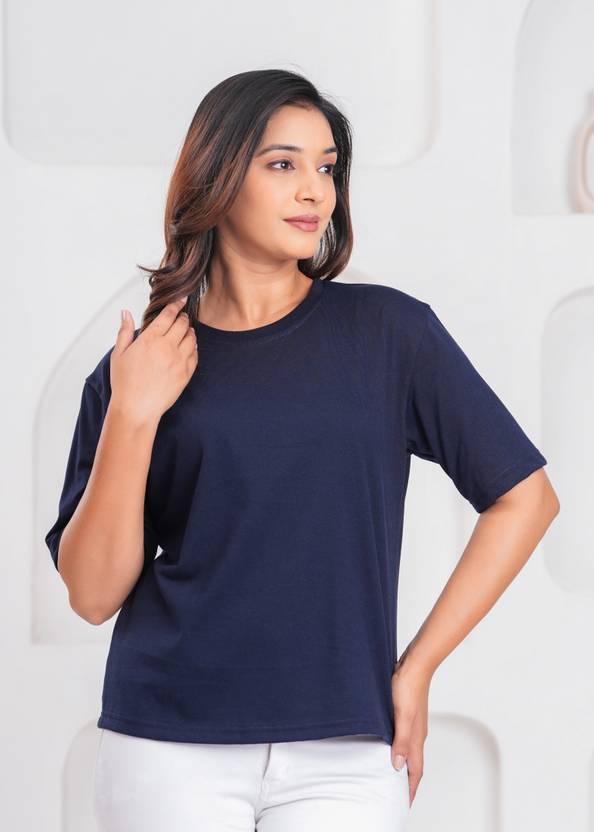 PURETEE Solid Women Round Neck Blue T-Shirt