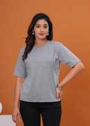 PURETEE Solid Women Round Neck Grey T-Shirt